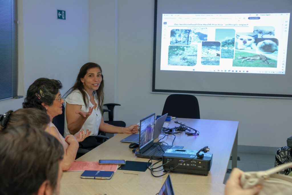 A programação do último dia contou com palestra do pesquisador do Centro de Resiliência de Estocolmo, Robert Blasiak, sobre a importância da saúde dos oceanos, e da veterinária Carla Campos, da Fiocruz, que ressaltou o conceito de One Health, uma abordagem integrada entre a saúde dos indivíduos, dos animais e do meio ambiente. Para Carla, as técnicas de modelagem desenvolvidas ao longo do curso são essenciais para a manutenção de um ecossistema saudável. “A modelagem oceânica contribui para o bem-estar do planeta ao prever eventos que possam prejudicar a saúde ambiental”, destacou.