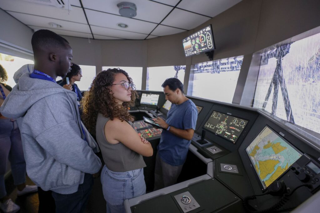 Os 15 pesquisadores em início de carreira que participaram presencialmente da Escola de Verão também visitaram as áreas técnicas do Laboratório de Métodos Computacionais em Engenharia (Lamce) e do Laboratório de Tecnologia Oceânica (LabOceano), ambos da Coppe/UFRJ. Entre outras atividades, o LabOceano realiza modelagem numérica de sistemas navais e oceânicos e conta com um simulador de manobras, utilizado para o treinamento da condução de navios, além de um tanque para experimentos em águas profundas, de 40 metros de comprimento, e que chega a até 25 metros de profundidade.